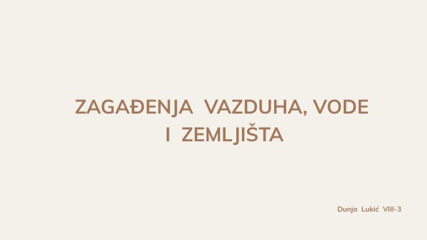 ZAGAĐENJA VAZDUHA, VODE I ZEMLJIŠTA