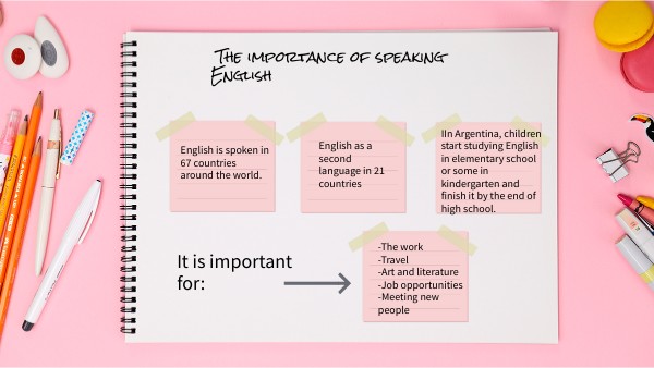 IIn Argentina, children start studying English in elementary school or some in kindergarten and finish it by the end of high school.