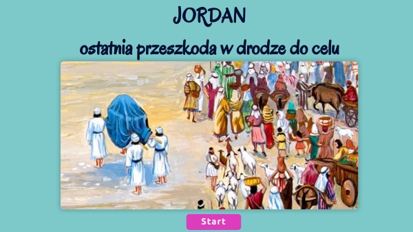 Dzięki cudownej pomocy Boga naród Izraelski pokonał rzeke Jordan, przechodząc przez nią suchą stopą. W ten sposób spełniła się Boża obietnica - Izraelici weszli do Ziemi Obiecanej.