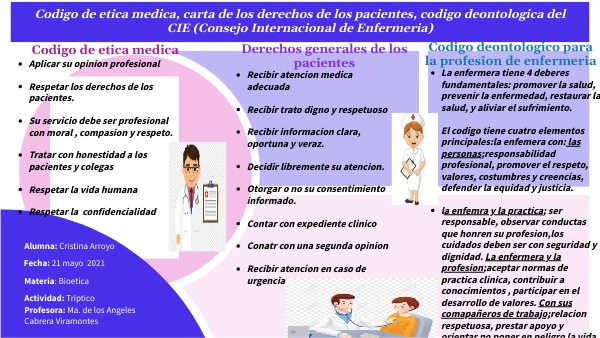 Codigo de etica medica, carta de los derechos de los pacientes, codigo deontologica del CIE (Consejo Internacional de Enfermeria)