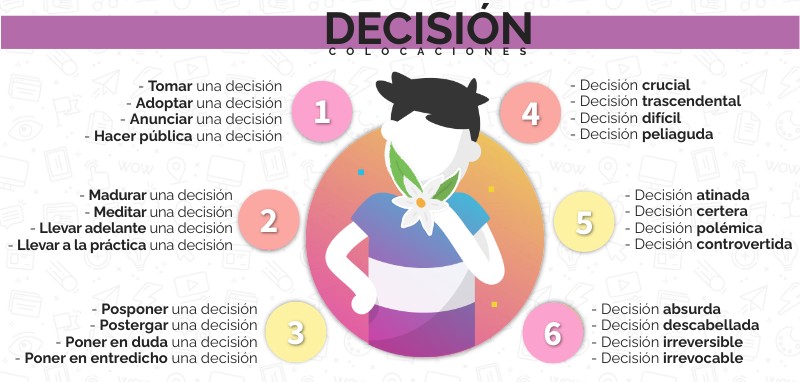 - Tomar una decisión- Adoptar una decisión- Anunciar una decisión - Hacer pública una decisión