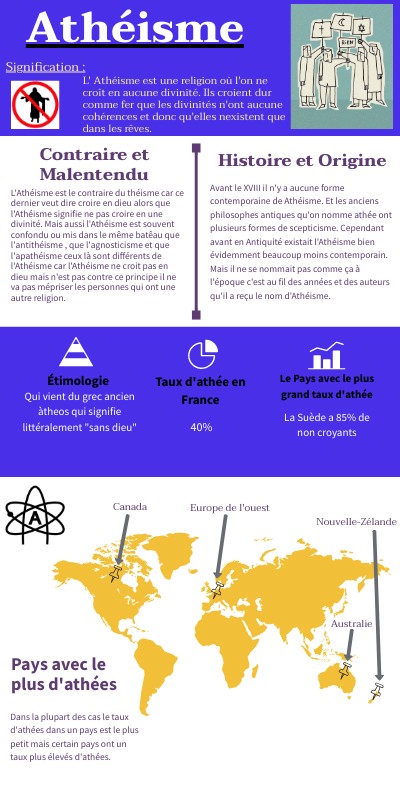 L' Athéisme est une religion où l'on ne croît en aucune divinité. Ils croient dur comme fer que les divinités n'ont aucune cohérences et donc qu'elles nexistent que dans les rêves.