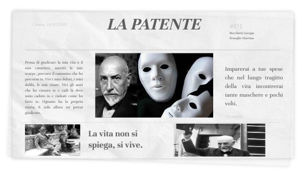 -Nasce nel 1867 ad Agrigento, Sicilia-Opere: "L'esclusa", "Il fu Mattia Pascal" e "Uno, nessuno e centomila" -Follia della moglie -Prestigiosa nomina ad Accademico d'Italia -Girò un film ad Hollywoood -Premio Nobel per la letteratura -Morì a Roma nel 1936