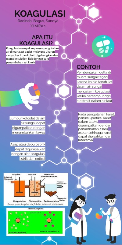Koagulasi merupakan proses pengolahan air dimana zat padat melayang ukuran sangat kecil dan koloid digabungkan dan membentuk flok-flok dengan cara penambahan zat kimia