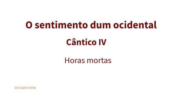 Em “Horas Mortas” fala se dá deambulação do sujeito poético pelas ruas da sua cidade, onde só se encontram os que vivem à margem da sociedade, os oprimidos. O sujeito poético sente se aprisionado e angustiado nesta atmosfera decadente, deprissiva e agonizante, mostra a sua vontade de querer fugir, as únicas pessoas que vê são os cães raivosos (“E sujos,sem ladrar, ósseos,febris, errantes, amareladamente, os cães parecem lobos”E.9), os bebados( “Na volta,com saudade, e aos bordos sobre as pernas,cantam, de braço dado, os tristes bebedores”E.9), os guardas noturnos(“ E os guardas, que revistam as escadas,caminham de lanterna e servem de chaveiros”E.10) e as prostitutas(Por ama, as imorais, nos seus roupões ligeiros”E.10)