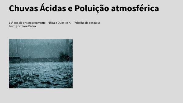 A principal caracteristica que identificam as chuvas ácidas são todos os gases poluentes que são libertados para a nossa atmosfera.