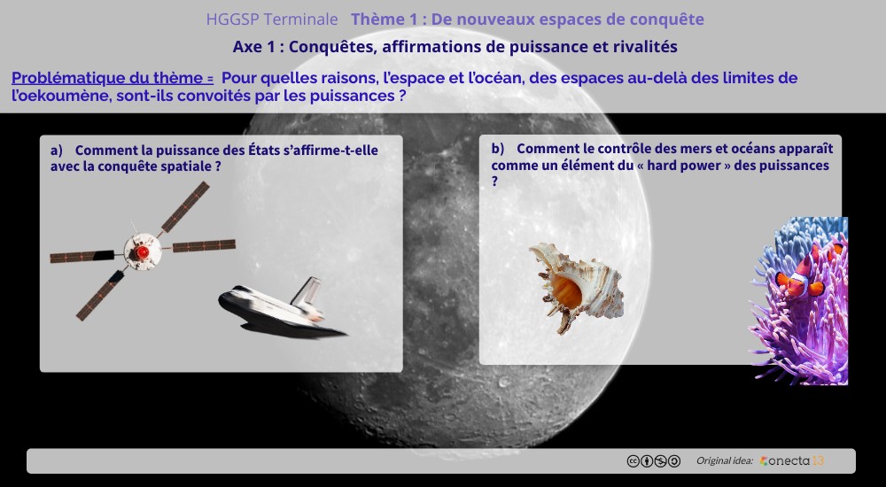 Problématique du thème = Pour quelles raisons, l’espace et l’océan, des espaces au-delà des limites de l’oekoumène, sont-ils convoités par les puissances ?