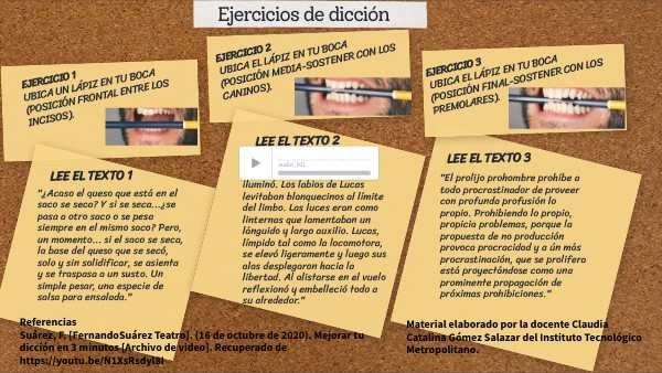 Referencias Suárez, F. [FernandoSuárez Teatro]. (16 de octubre de 2020). Mejorar tu dicción en 3 minutos [Archivo de video]. Recuperado de https://youtu.be/N1XsRsdyl8I