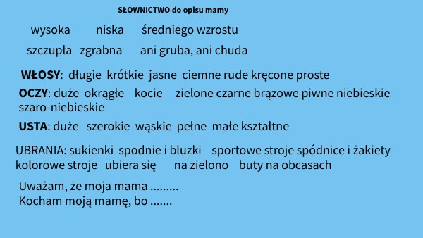 SŁOWNICTWO do opisu mamy