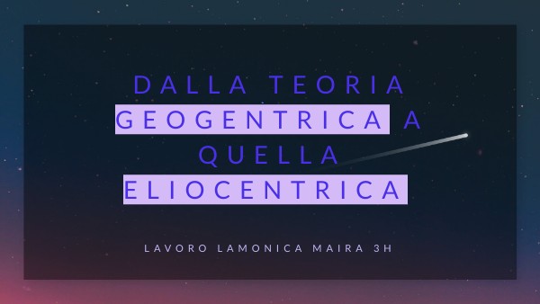 Lorem Si arrivò alla teoria eliocentrica in cui si afferma che è il sole al centro dell'universo graze all'astronomo polacco Copernico nel 1543 pubblicò un'opera :"De revolutionibus orbium coelestium (Sulle rivoluzioni dei corpi celesti)" relativa all'eliocentrismo sostenendo che se gli astri ruotassero intorno al Sole i calcoli risulterebbero molto più semplici. Molti storici ritengono che Copernico credesse effettivamente nella teoria eliocentrica e che solo per prudenza la presentasse come un puro espediente matematico. Le obiezioni scientifiche furono molte e non facilmente superabili perché implicavano una sostanziale modifica di tutto il pensiero scientifico. Le più importanti furono: I CALCOLI- Infatti i calcoli delle due teorie si equivalevano sostanzialmente. Anzi l'antica tradizione geometrica presentava calcoli più precisi dei nuovi. Mancava quindi una prova sperimentale che potesse giustificare il superamento di una teoria adottata da millenni. Sintetizzata dalla domanda: se la Terra si muove perché non ce ne accorgiamo? Questo anche perché la velocità di rotazione della Terra sarebbe molto alta: in 24 ore girerebbe su se stessa, inconcepibile per quel tempo. Se il cielo e la Terra seguono le stesse leggi allora perché il Sole e gli altri astri non ci cadono addosso? Si poté rispondere solo dopo gli studi di Newton con la scoperta della legge di gravitazione universale che rese effettivamente comprensibile tutto il sistema degli astri. Ai sapienti si presentavano due teorie astronomiche: Tolemaica Antica e Copernicana Nuova Di difficile comprensione. Ma quella vera e che tutti noi oggi conosciamo essendo stata anche affermata da Copernico è quella eliocentrica.