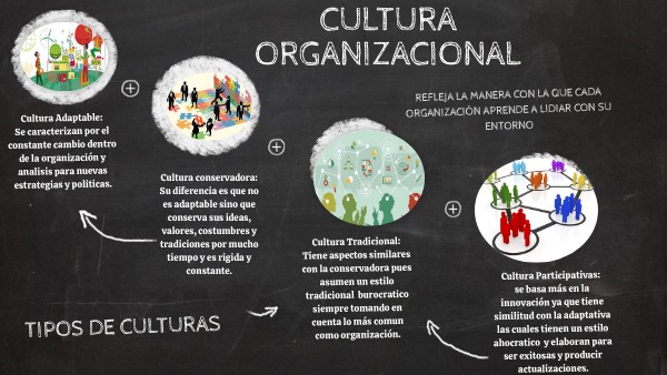 Cultura Tradicional:Tiene aspectos similares con la conservadora pues asumen un estilo tradicional burocratico siempre tomando en cuenta lo más comun como organización.
