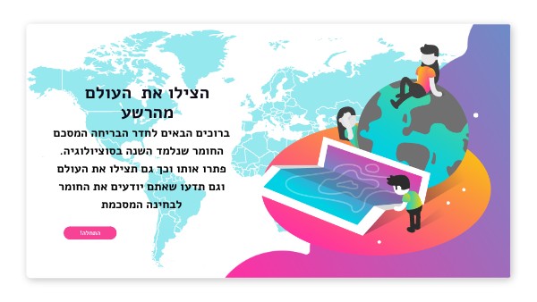 ברוכים הבאים לחדר הבריחה המסכם החומר שנלמד השנה בסוציולוגיה. פתרו אותו וכך גם תצילו את העולם וגם תדעו שאתם יודעים את החומר לבחינה המסכמת