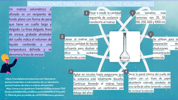 -https://www.tplaboratorioquimico.com/laboratorio-quimico/materiales-e-instrumentos-de-un-laboratorio-quimico/matraz-de-aforo-o-matraz-aforado.html https://www.uv.es/gammmm/Subsitio%20Operaciones/3%20material%20de%20uso%20frecuente%20COMPLETO.htm#3.1.1._Material_para_la_medida_de_vol%C3%BAmenes_aproximados