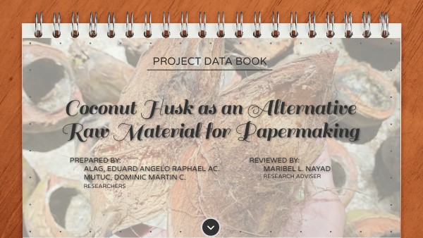 Revision of Chapter 1: 100% Revision of Chapter 2: 100% Revision of Chapter 3: 100% Revision of Concept Note: 100% Revision of Research Proposal: 100% Preparation of Materials: 100% Production of Coconut Husk Paper: 100% Testing the Handsheets: 100%