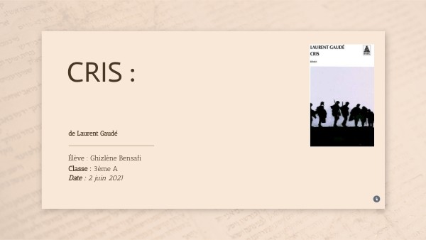 - mon sujet s'inscrit dans le cadre de l'EPI - Laurent Gaudé , auteur du livre Cris - écrivain français de nationalité soudannais - né le 6 juillet 1972 ( 48 ans actuellement ) - thème principal : Première Guerre mondiale - reçu un accueil très positif