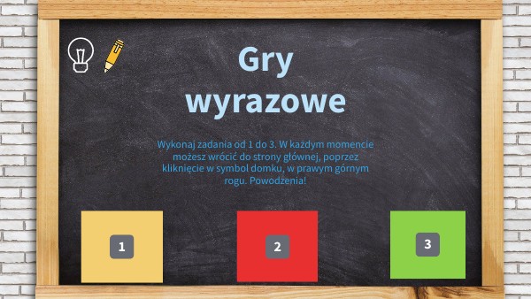 Wykonaj zadania od 1 do 3. W każdym momencie możesz wrócić do strony głównej, poprzez kliknięcie w symbol domku, w prawym górnym rogu. Powodzenia!