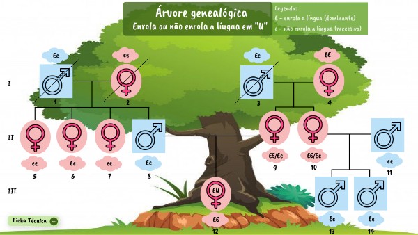Legenda:E - enrola a língua (dominante) e - não enrola a língua (recessivo)
