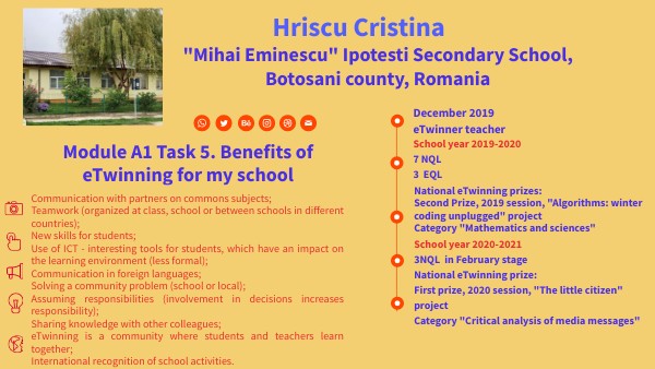 Module A1 Task 5. Benefits of eTwinning for my school