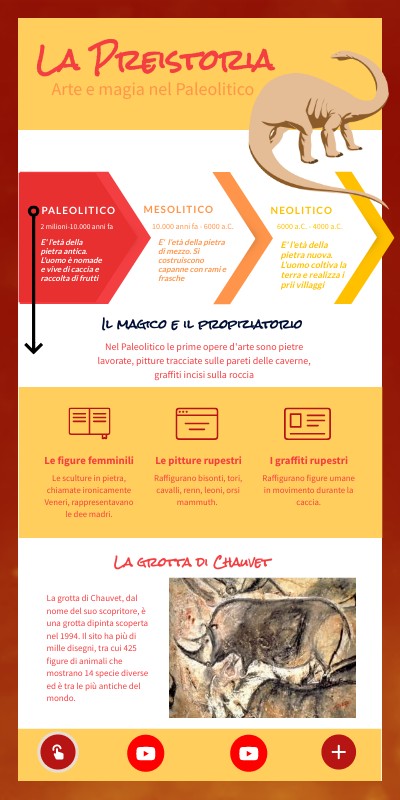 Nel Paleolitico le prime opere d'arte sono pietre lavorate, pitture tracciate sulle pareti delle caverne, graffiti incisi sulla roccia