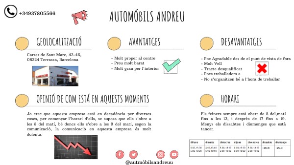 Jo crec que aquesta empresa està en decadència per diverses coses, per començar l'horari d'ells, se suposa que ells s'obre a les 8 del matí, bé doncs ells s'obre a les 9 del matí, segon la comunicació, la comunicació en aquesta empresa és molt dolenta.
