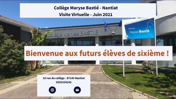 "Chers parents, chers futurs élèves de 6eme, Je vous souhaite la bienvenue au collège M. Bastié de Nantiat. Cette visite virtuelle va vous permettre de prendre connaissance des activités de l'établissement . Le collège présente de nombreux atouts. Il dispose d'une équipe enseignante dynamique, d'une association sportive le mercredi après-midi et offre des dispositifs d'aide aux devoirs ainsi que des aides spécifiques pour accompagner certains élèves à besoins particuliers. Le collège est comme neuf grâce à de nombreux travaux d'agrandissement, d'isolation, de câblage informatique et l'entretien de l'équipe d'agents sur place. Le gymnase, situé près du collège, permet d'assurer de très bonnes conditions pour la pratique sportive et la restauration offre des repas de qualité avec des produits issus des producteurs locaux à travers la plateforme "agrilocal". Nous avons à coeur la réussite de tous les élèves qui est au centre de notre projet d'établissement. Cet objectif ne peut être atteint qu'avec la confiance des familles. Je vous souhaite, à toutes et à tous, une agréable visite virtuelle et une excellente année scolaire 2025/2026."