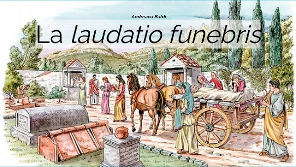 La laudatio funebris era l'orazione che veniva proferita dai parenti o da un esperto oratore appositamente designato in memoria di un defunto durante la cerimonia funebre. Il rito del funerale era complesso, con riti vari tra cui un'offerta sacrificale e un'invocazione agli Dei Mani, nonchè una processione dove i familiari dell'insigne defunto portavano o indossavano le imagines dei loro antenati, che potevano essere statuette in cera o in marmo, oppure maschere, in cera o in legno, portate dagli stessi familiari o da attori designati.