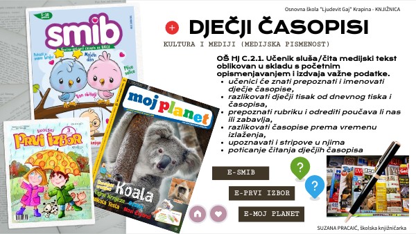 - učenici će znati prepoznati i imenovati dječje časopise,