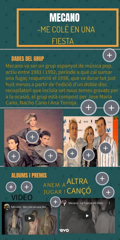 Mecano va ser un grup espanyol de música pop, actiu entre 1981 i 1992, període a què cal sumar una fugaç reaparició el 1998, que va durar tot just huit mesos a partir de l'edició d'un doble disc recopilatori que incloïa set nous temes gravats per a la ocasió, el grup està compost per Jose Maria Cano, Nacho Cano i Ana Torroja.