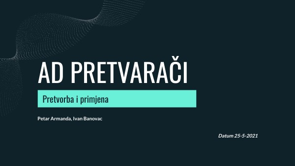 AD pretvarač je sklop za konverziju analognog signala na digitalni. Ima razne vrste pretvorbi i izvedbi samog sklopa.Sam sklop ima široku primjenu u svijetu tehnologije i vrlo je korišten.