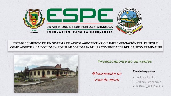 Ecuador es un país diverso que cuenta con gran diversidad de especies frutícolas, una de ellas es la mora de castilla (Rubus glaucus Benth) siendo propia de la serranía ecuatoriana, su escasa concentración de hidratos de carbono lo convierte en una fruta de bajo valor calórico, además de ser un antioxidante contiene polifenólicos, betacarotenos y bioflavonoides, resulta ser beneficiosa y tener aceptación nacional e internacional, tanto en fresco como procesados. Existe una demanda de vino de frutas la cual ha hecho posible la apertura de pequeños emprendimientos dedicados a la elaboración de bebidas fermentadas caseras. La cual puede ser fuente de ingresos de pequeños productores.