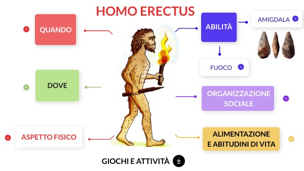 Ora conosci bene l'Homo Erectus. Qui troverai attività e giochi divertenti che ti permetteranno di metterti alla prova e scoprire cosa hai imparato. Se non ricordi qualcosa puoi sempre ritornare alla mappa.