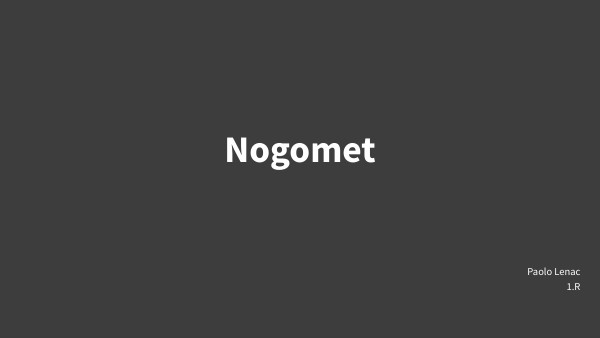 - Nogomet je sport u kojemu se dvije momčadi od 11 igrača nadmeću na pravokutnom igralištu travnate površine.