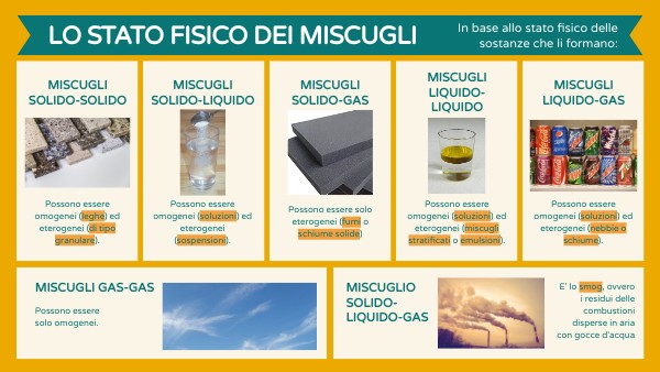 Possono essere omogenei (soluzioni) ed eterogenei (nebbie o schiume).