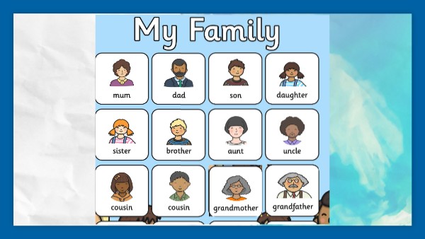 mother/mummy father/daddy grandmother/ grandma grandfather/ grandpa brother sister son daughter aunt uncle cousin