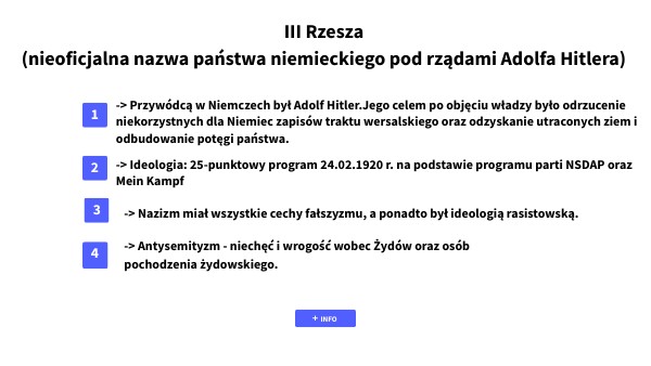 -> W III Rzeszy partia nazistowska sprawowała totalitarną kontrolę nad niemal wszystkimi aspektami życia obywateli. -> Reżim nazistowski dobiegł końca po zwycięstwie wojsk alianckich nad III Rzeszą w maju 1945 roku, co zakończyło II wojnę światową w Europie.
