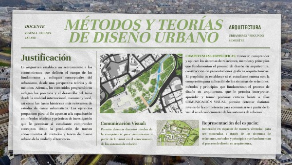 - Comprende los modelos de ciudad contemporáneaos, métodos y teorías del diseño.
