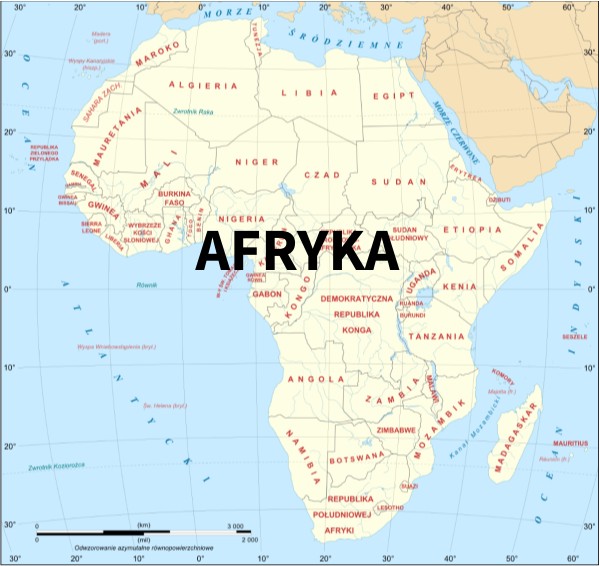 Afryka – drugi pod względem wielkości kontynent na Ziemi. Zajmuje 30,37 mln km², czyli ponad 20,3% ogólnej powierzchni lądowej Ziemi. Przechodzą przez niego południk 0°, obydwa zwrotniki i równik.