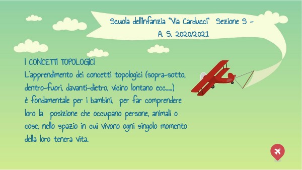 I CONCETTI TOPOLOGICIL'apprendimento dei concetti topologici (sopra-sotto, dentro-fuori, davanti-dietro, vicino lontano ecc..…) è fondamentale per i bambini, per far comprendere loro la posizione che occupano persone, animali o cose, nello spazio in cui vivono ogni singolo momento della loro tenera vita.