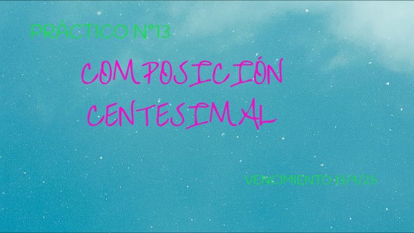 Problema n° 5 Con los siguientes datos calcular la composición centesimal del sistema heterogéneo formado por: a) Agua = 10 g b) Hierro en polvo = 2 g c) Mica = 3 g Al descomponer 216,6 g de óxido mercurioso (HgO), se forman 200,6 g de Hg y 16,0 g de O, hallar su composición centesimal. Problema n° 6 Con los siguientes datos calcular la composición centesimal del sistema homogéneo formado por: a) Ca = 80 g b) O = 32 g Problema n° 7 Analizando el CO2, se halló que en 440 g de éste hay 120 g de C y 320 g O, hallar la composición centesimal. Problema n° 8 Analizando 720 g de agua se hallaron: a) H = 80 g b) O = 640 g Hallar la composición centesimal.