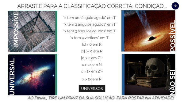 ARRASTE PARA A CLASSIFICAÇÃO CORRETA: CONDIÇÃO...