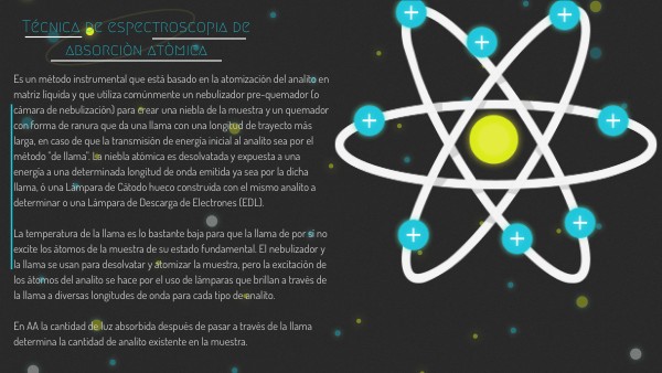 Es un método instrumental que está basado en la atomización del analito en matriz líquida y que utiliza comúnmente un nebulizador pre-quemador (o cámara de nebulización) para crear una niebla de la muestra y un quemador con forma de ranura que da una llama con una longitud de trayecto más larga, en caso de que la transmisión de energía inicial al analito sea por el método "de llama". La niebla atómica es desolvatada y expuesta a una energía a una determinada longitud de onda emitida ya sea por la dicha llama, ó una Lámpara de Cátodo hueco construida con el mismo analito a determinar o una Lámpara de Descarga de Electrones (EDL). La temperatura de la llama es lo bastante baja para que la llama de por sí no excite los átomos de la muestra de su estado fundamental. El nebulizador y la llama se usan para desolvatar y atomizar la muestra, pero la excitación de los átomos del analito se hace por el uso de lámparas que brillan a través de la llama a diversas longitudes de onda para cada tipo de analito. En AA la cantidad de luz absorbida después de pasar a través de la llama determina la cantidad de analito existente en la muestra.