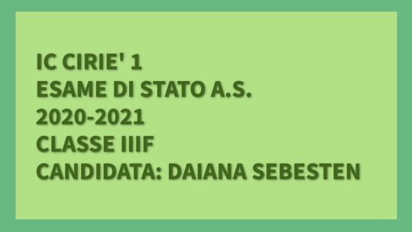 IC CIRIE' 1 ESAME DI STATO A.S. 2020-2021 CLASSE IIIF CANDIDATA: DAIANA SEBESTEN