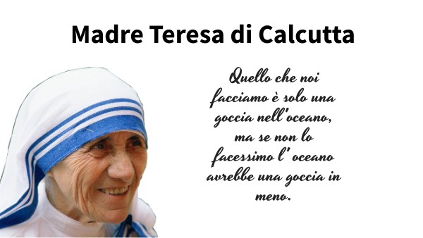 Quello che noi facciamo è solo una goccia nell'oceano, ma se non lo facessimo l' oceano avrebbe una goccia in meno.