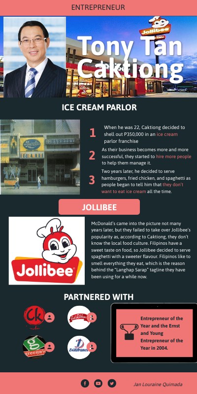 When he was 22, Caktiong decided to shell out P350,000 in an ice cream parlor franchise