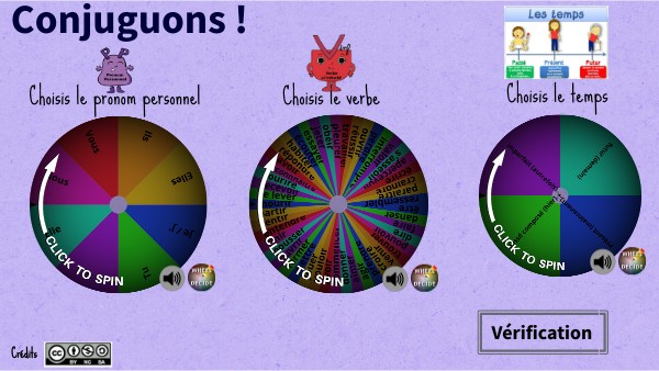 Des roulettes pour déterminer le pronom personnel, le verbe et le temps.