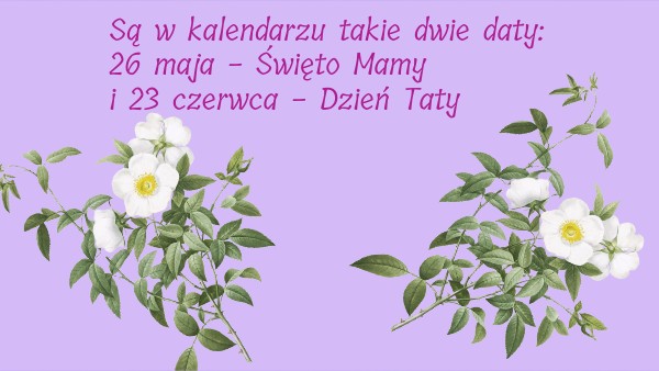 Są w kalendarzu takie dwie daty: 26 maja - Święto Mamy i 23 czerwca - Dzień Taty