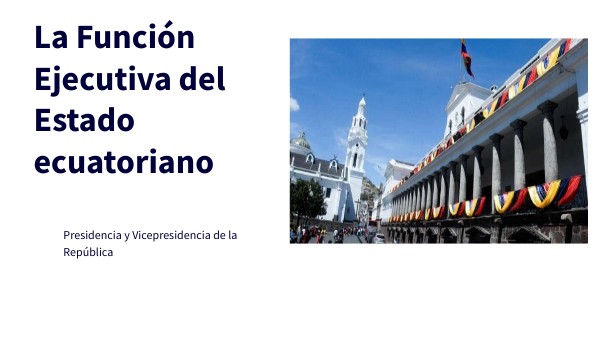 La Función Ejecutiva, además del presidente, está conformada por el vicepresidente, los ministros de Estado y los demás organismos e instituciones que ejecutan las políticas públicas del gobierno