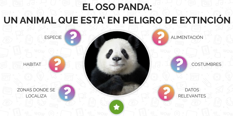 El panda es un mamífero omnívoro conocido por su coloración en blanco y negro. Pertenece a la familia de los osos pero, a diferencia de ellos, no hiberna. En China es llamado oso-gato debido a la forma pequeña y alargada de sus ojos, similar a los felinos.