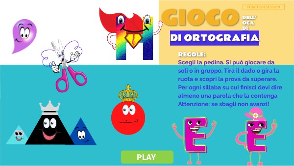 Scegli la pedina. Si può giocare da soli o in gruppo. Tira il dado o gira la ruota e scopri la prova da superare. Per ogni sillaba su cui finisci devi dire almeno una parola che la contengaAttenzione: se sbagli non avanzi!