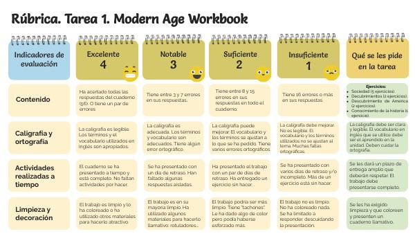 Rúbrica. Tarea 1. Modern Age Workbook